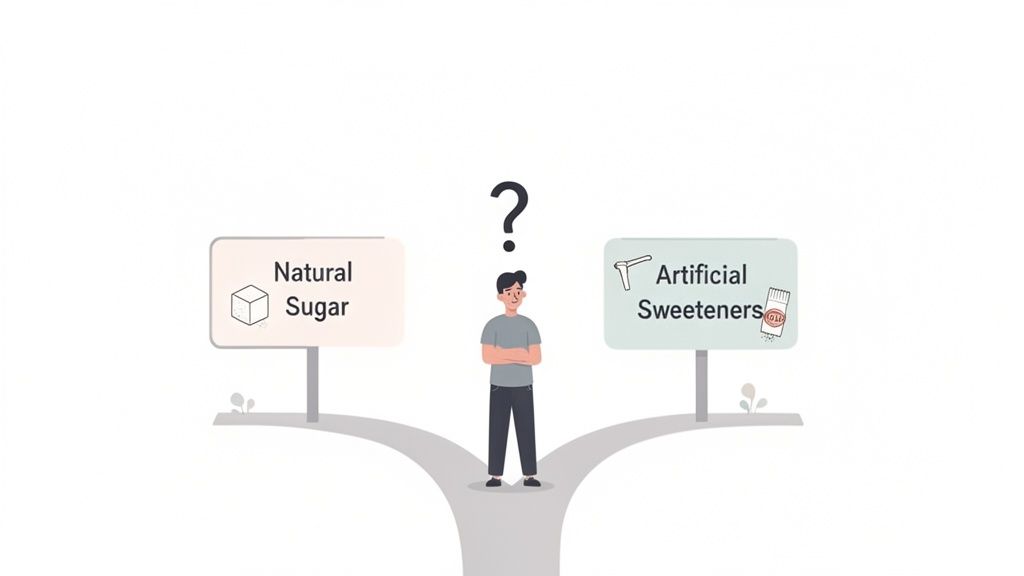 Choosing between natural sugar and an artificial sweetener isn't just about taste. It's a decision that sends a cascade of different signals through your body, influencing everything from your energy levels to the trillions of tiny organisms living in your gut. Getting to the heart of the artificial sweeteners vs. natural sugar debate means understanding what happens after that first sweet bite.