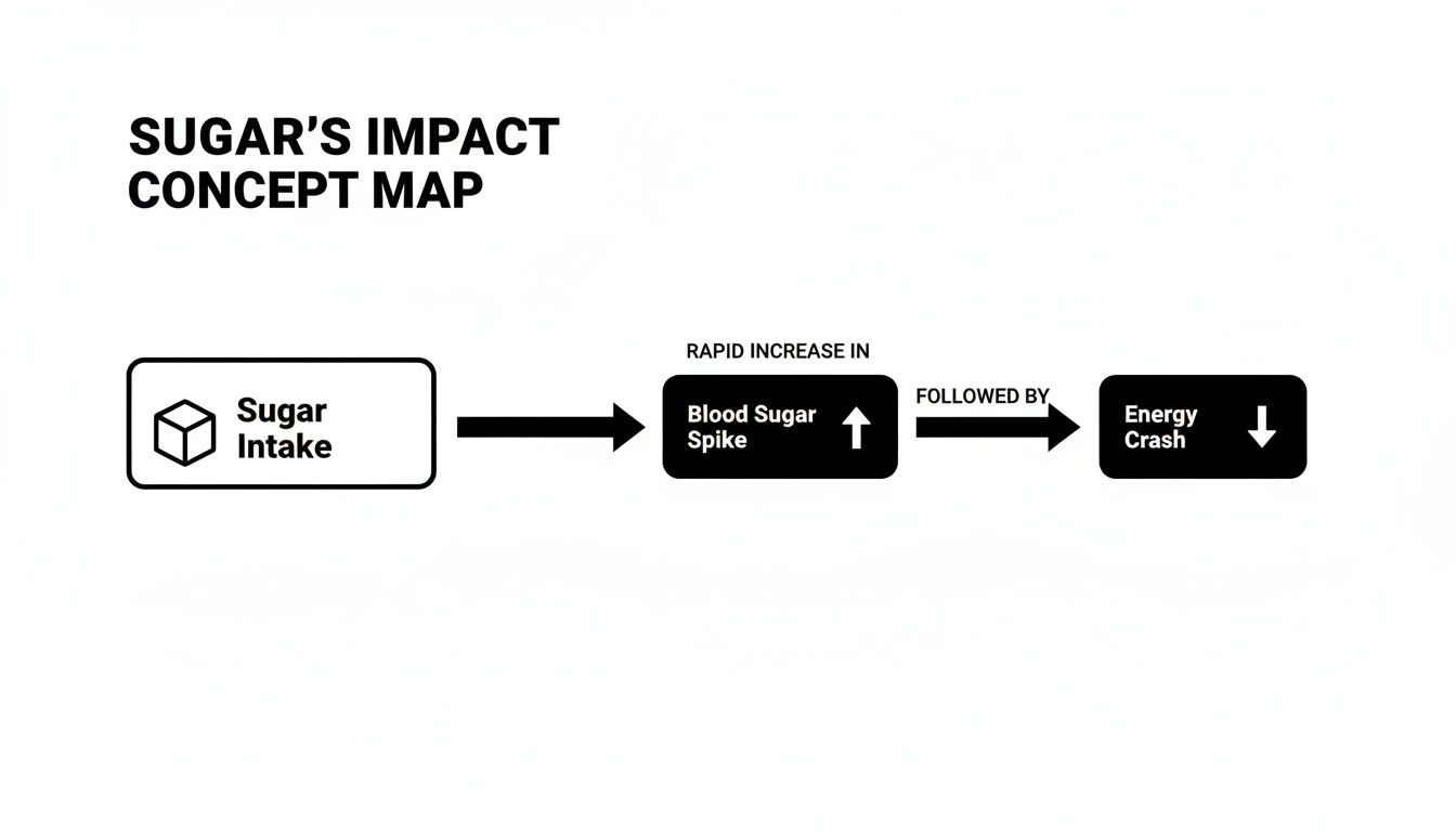 This is the classic sugar cycle we've all felt: the quick high followed by the hard crash. It’s a vicious loop that leaves you tired and reaching for another fix.