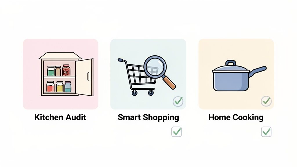 Think of it as a three-part game plan. Each strategy builds on the one before it, giving you complete control over what you're eating. This approach makes finding and cutting out hidden sugar feel less like a chore and more like a win.