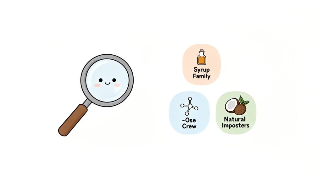 To help you become a pro at spotting these sneaky ingredients, here’s a quick-glance table. Think of it as your cheat sheet for identifying sugar's many alter egos when you're at the grocery store.