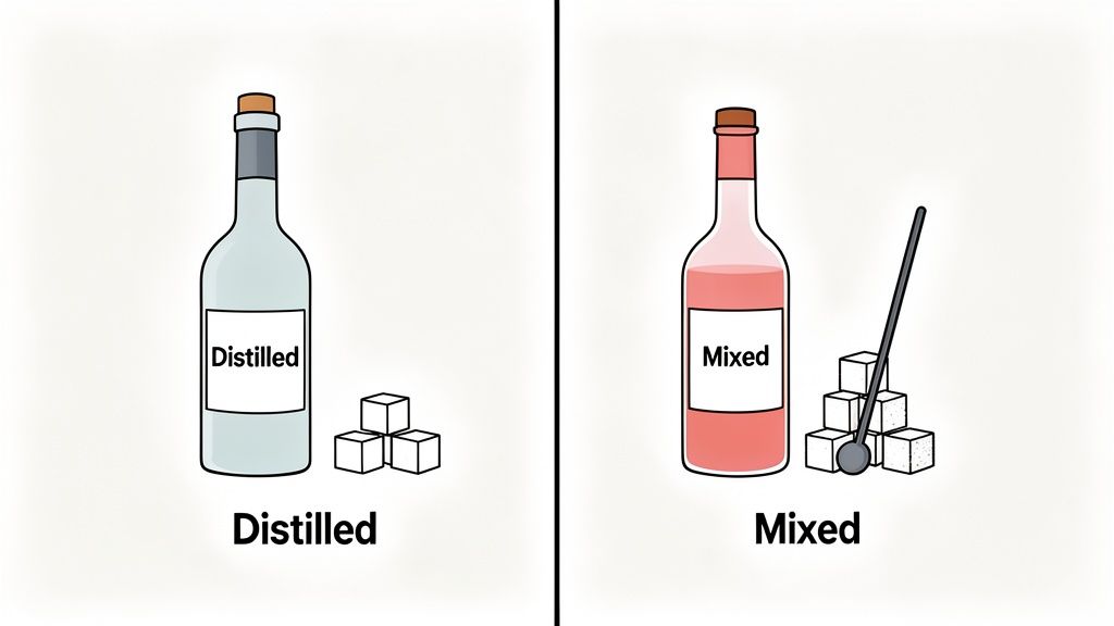 This is a really important distinction for anyone trying to cut back on sugar. Learning to spot the difference between a dry wine and a sweet dessert wine, or understanding why a vodka soda is a better choice than a vodka cranberry, is your secret weapon for enjoying a drink without derailing your health goals.