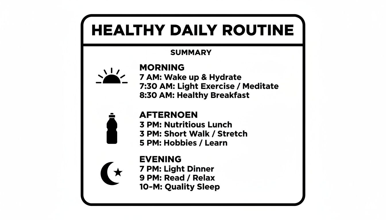 The goal isn't to live by a rigid, military-style schedule. It's about creating a few solid anchor points in your day. These simple routines take the guesswork out of eating well, keep your energy steady, and make healthy choices the easiest option available.