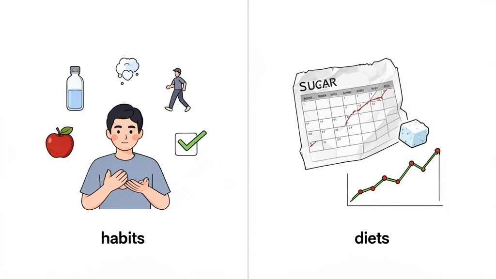 The biggest difference between a diet and a lifestyle change is your mindset. A diet has a start and an end date. A lifestyle change is a lifelong commitment to your well-being. This journey starts with understanding your current patterns without judging yourself. For a great overview, check out this sustainable weight loss guide for beginners.