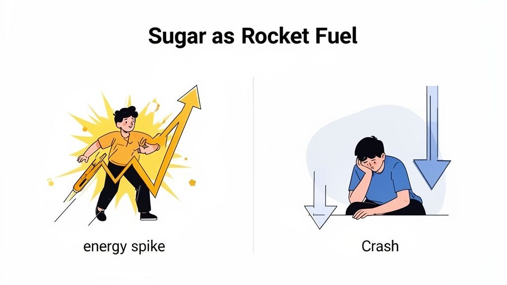 When you eat refined sugar, it's like lighting a fire with gasoline. You get a sudden, intense burst of energy that your body can use almost instantly. This is why a sugary treat can feel so good when you're hitting that afternoon slump—it's a quick fix.