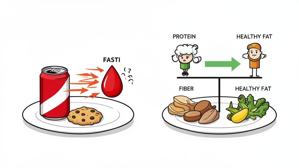 For a more detailed look at this, our guide on how to stabilize blood sugar levels is packed with more ideas and strategies.