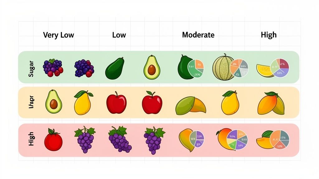 Discover which fruits are high or low in sugar with our comprehensive fruit sugars chart. Make smarter, healthier choices for your diet and manage sugar intake.
